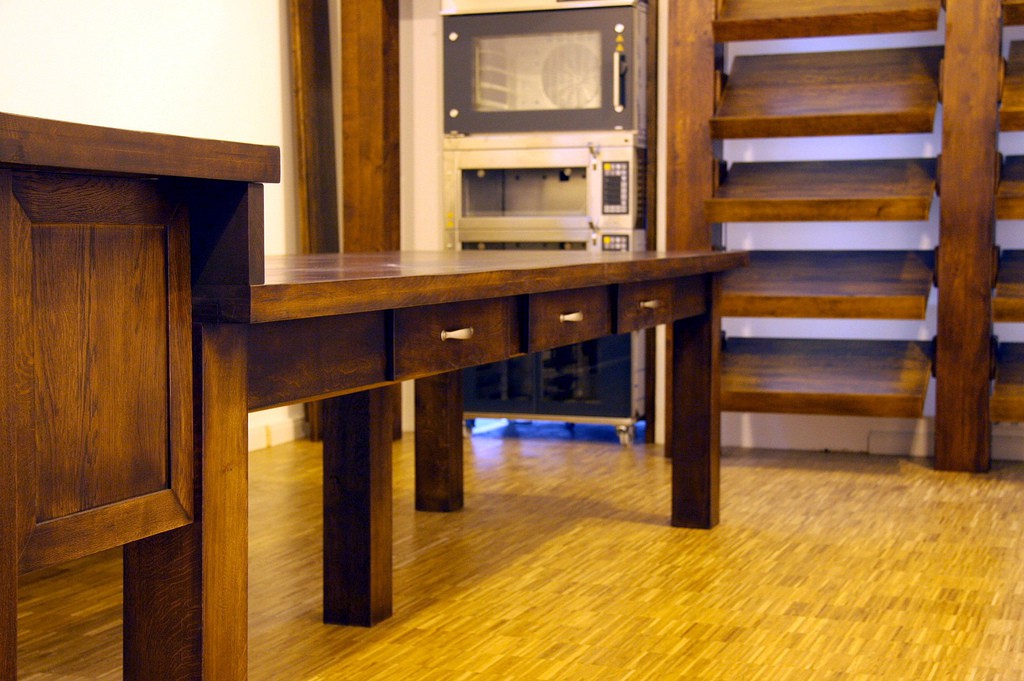 Stilvolle Einrichtung aus Eiche in einer Bäckerei.